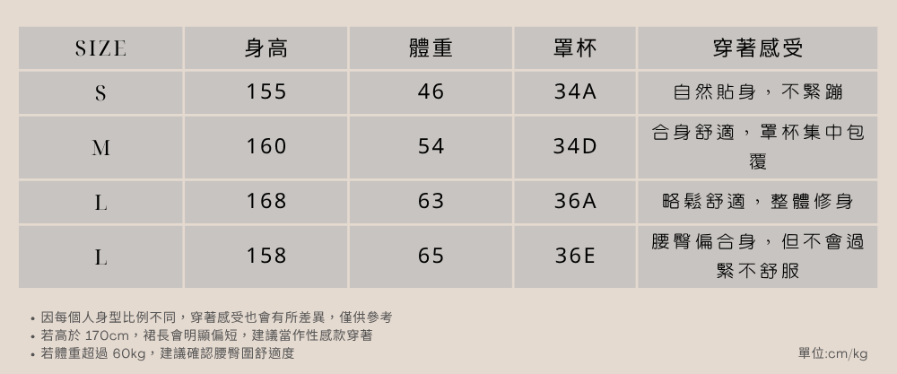 - L適合台碼的34CD~36BC