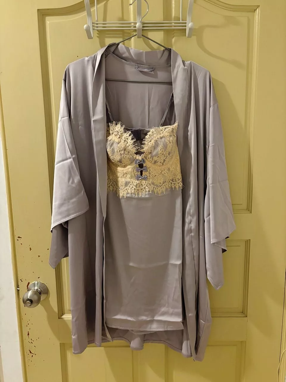 設計概念:此款睡衣選用柔滑細緻的絲質,搭配睫毛蕾絲十分典雅別緻,粉嫩的紫色和粉紅色很甜美,有鋼圈支撐讓胸型更完美,有同款睡袍可以加購。