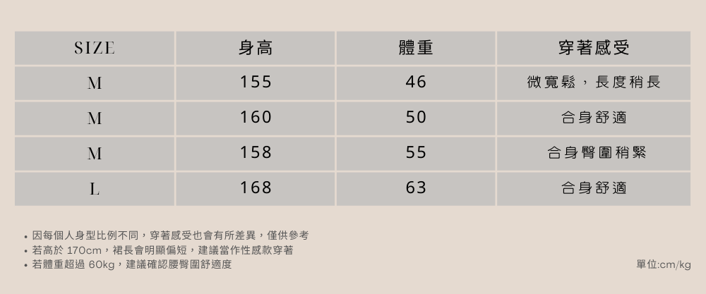 - 請見下方尺寸表