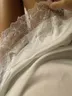 設計概念:此款睡衣選用輕薄柔滑絲稠,涼爽舒適非常親膚,胸前採用薄紗點綴非常浪漫,唯美的立體刺繡蕾絲和絲質完美拚接,細肩帶延伸到背部是非常迷人的露背設計,呈現自信女人味。
