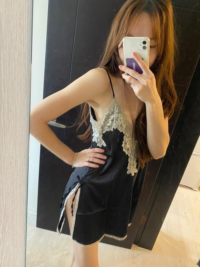 側開叉絲質性感睡衣 | 黑色/紅色/白色/粉紅色 | ZD32對白