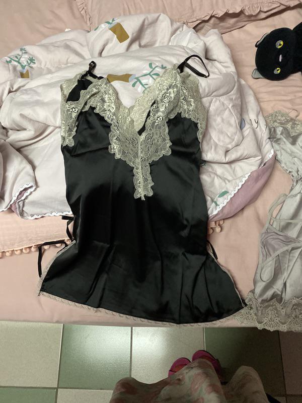 此款睡衣選用柔滑細緻的絲質,不扎皮膚,沒有多餘的圖案低調有質感,有一定的垂綴感,蕾絲增添了優雅感,搭配同款睡袍一整套的更加浪漫柔美。