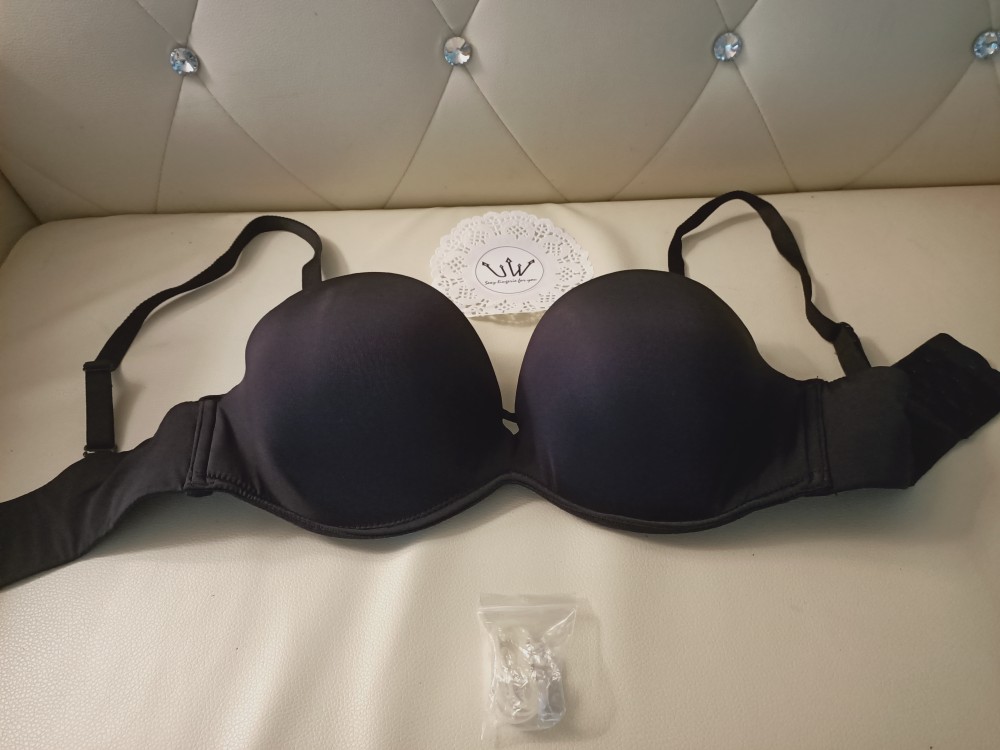 罩杯升級深V厚墊防滑平口無肩帶內衣 | 黑色/膚色 | CD07吻膚系列